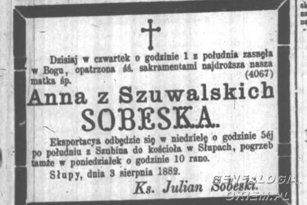 Szuwalska Anna, zam. Sobeska