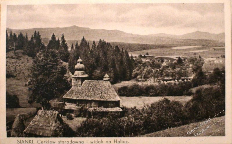 Sianki - cerkiew i widok na Halicz
